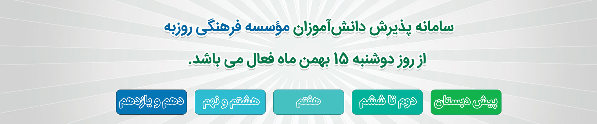 | مراحل پذیرش / پایه | پیش دبستان | دوم تا ششم | هفتم | هشتم و نهم | دهم و یازدهم |